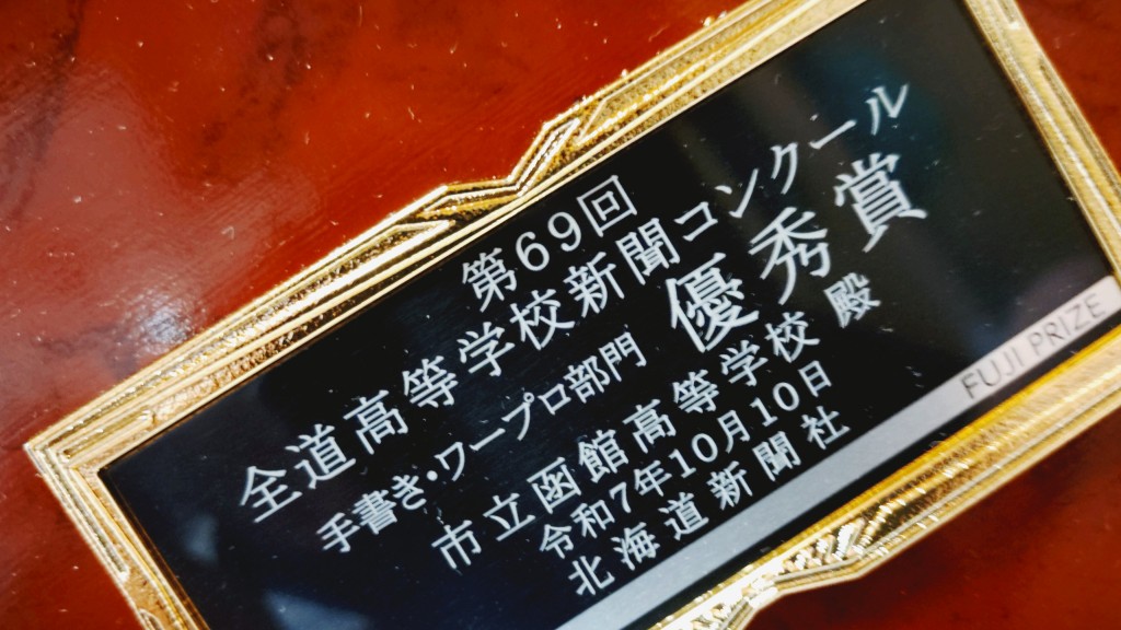大会のあとに発表が行われた全道コンクールの結果は「優秀賞」。冒頭の写真は副賞としてもらった楯のプレートです。