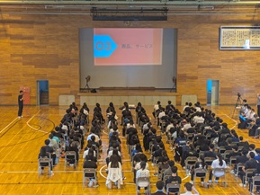 7月16日、本校では総合的な探究の時間の一環として「プレゼンテーション」発表会を行いました。日本政策金融公庫様のご協力のもと、生徒はあらかじめグループを組み、日常生活や身近な社会問題に着目した独自のビジネスプランを作成。クラス内の発表会を経て選出された代表5グループが、学年・教員の前で成果を披露しました。