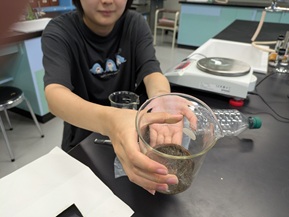 8月の最終提出を前に、生徒たちは講習など受験勉強の合間を縫い、レポートの仕上げや、追加調査に励んでいます。 今回は、日焼け止めが海に与える影響を調べる生徒の様子を見学しました。水槽で海を再現し、いくつかの日焼け止めを添加して変化を観察しているのですが、その眼差しは真剣そのもの。